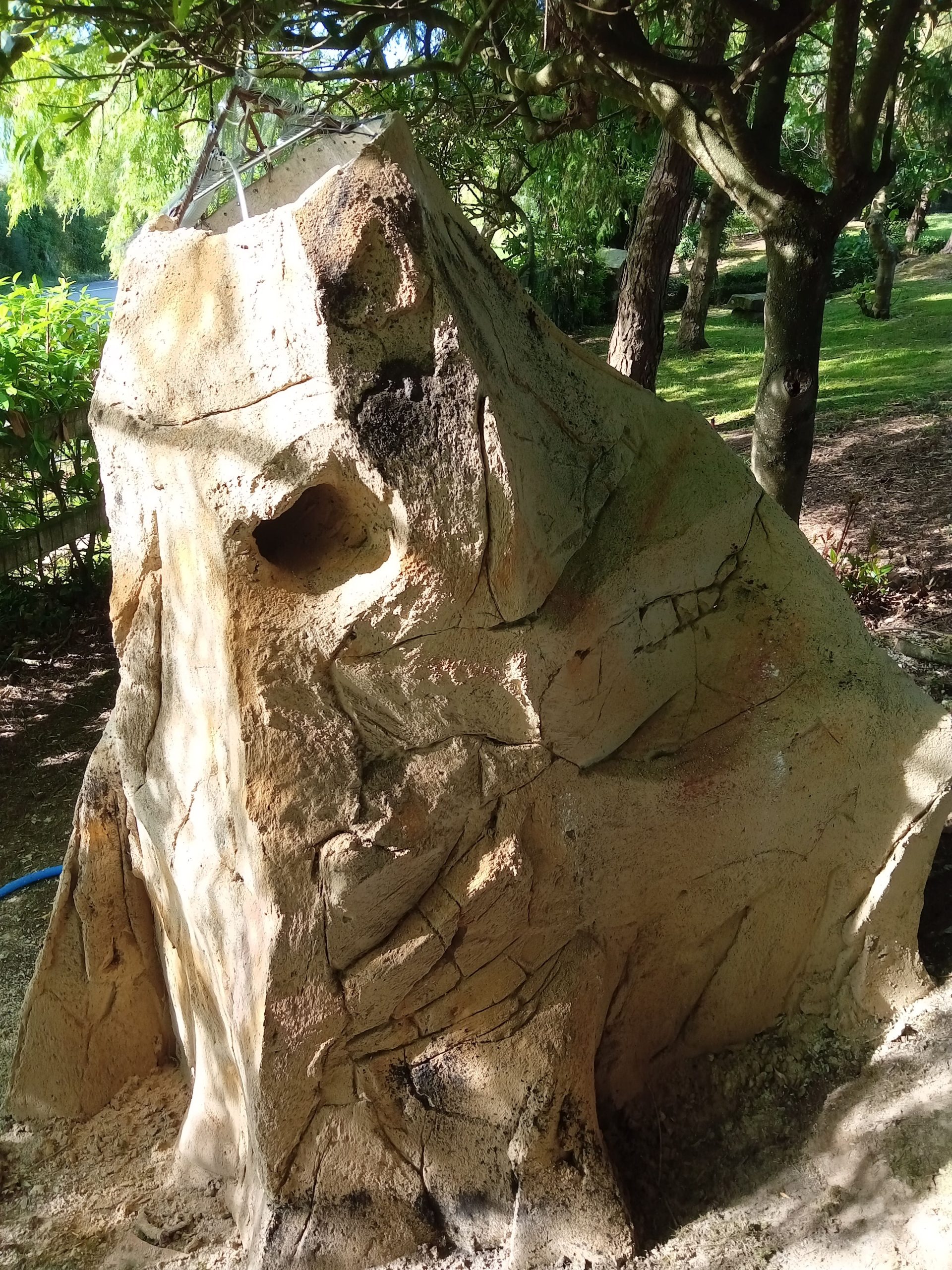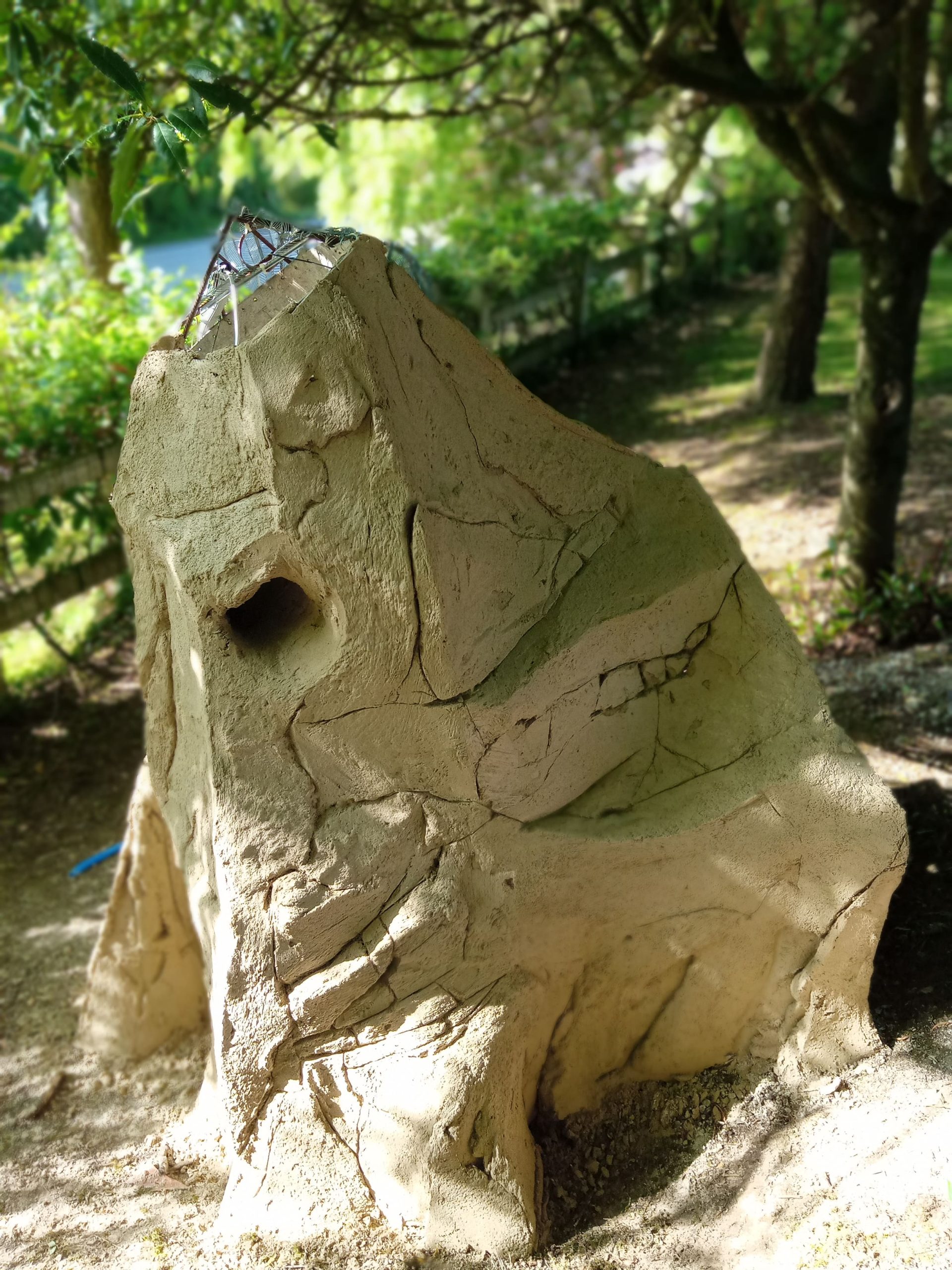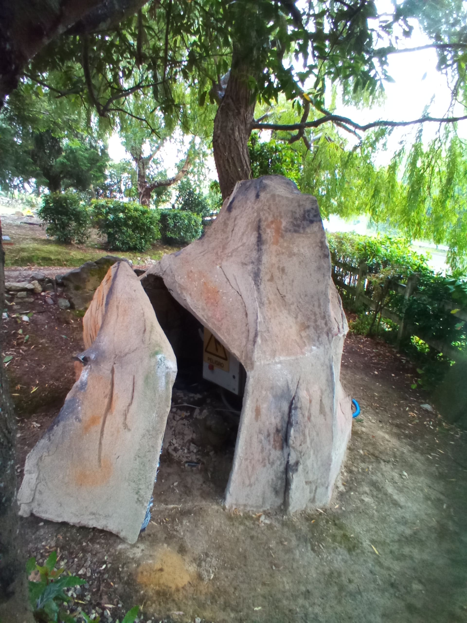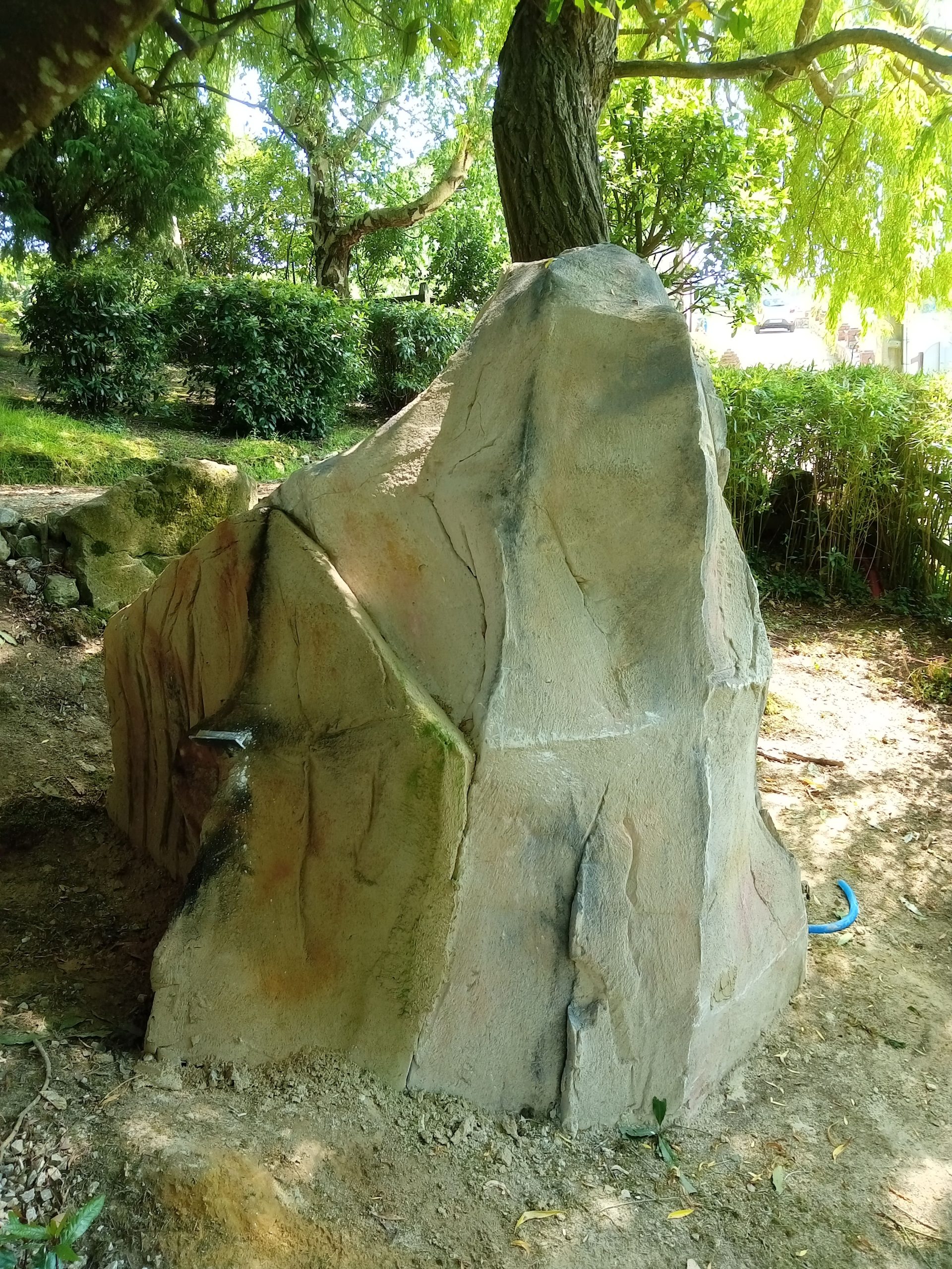 En forma de roca natural, creamos con una piedra de entorno iluminada de noche
