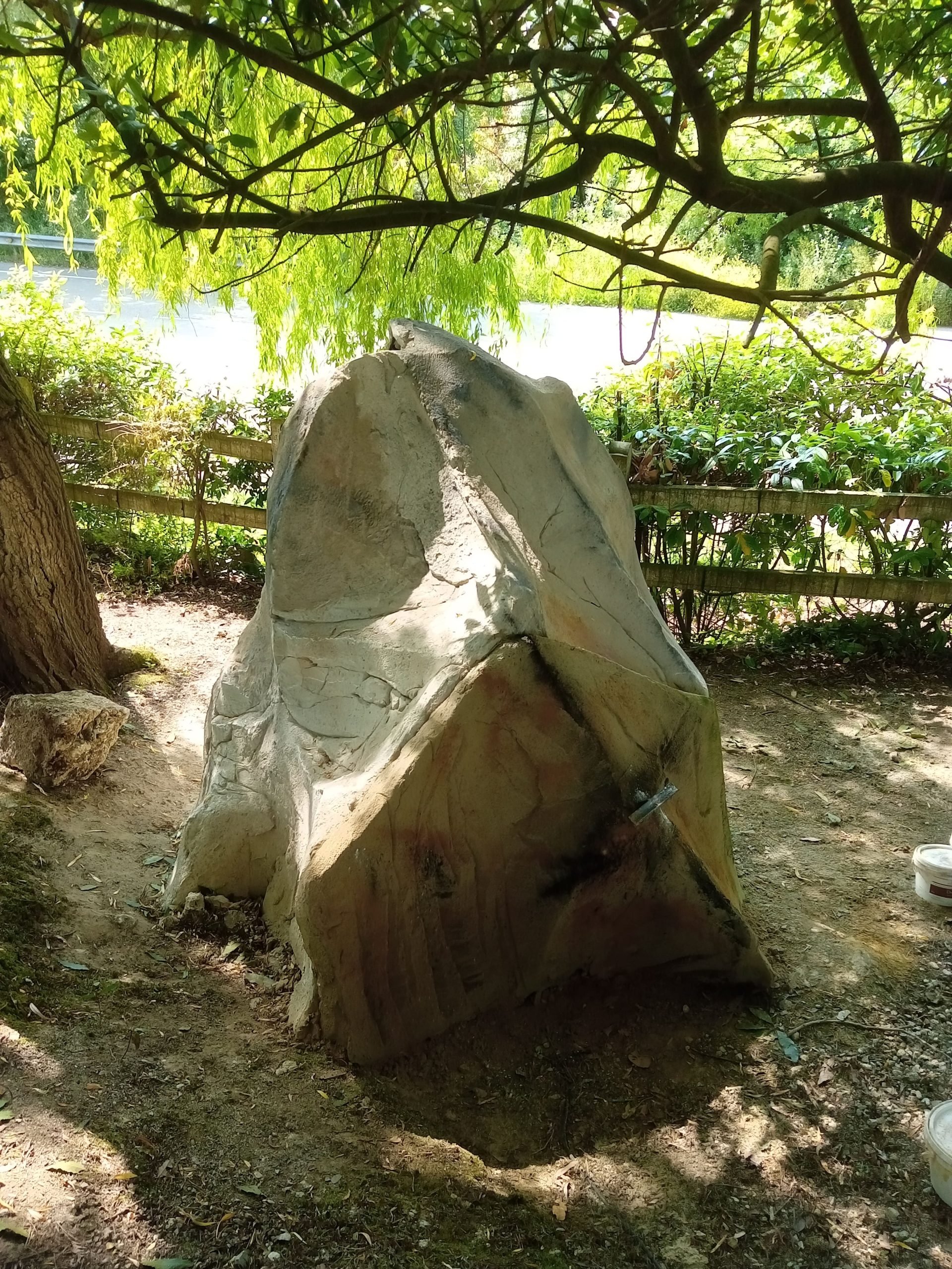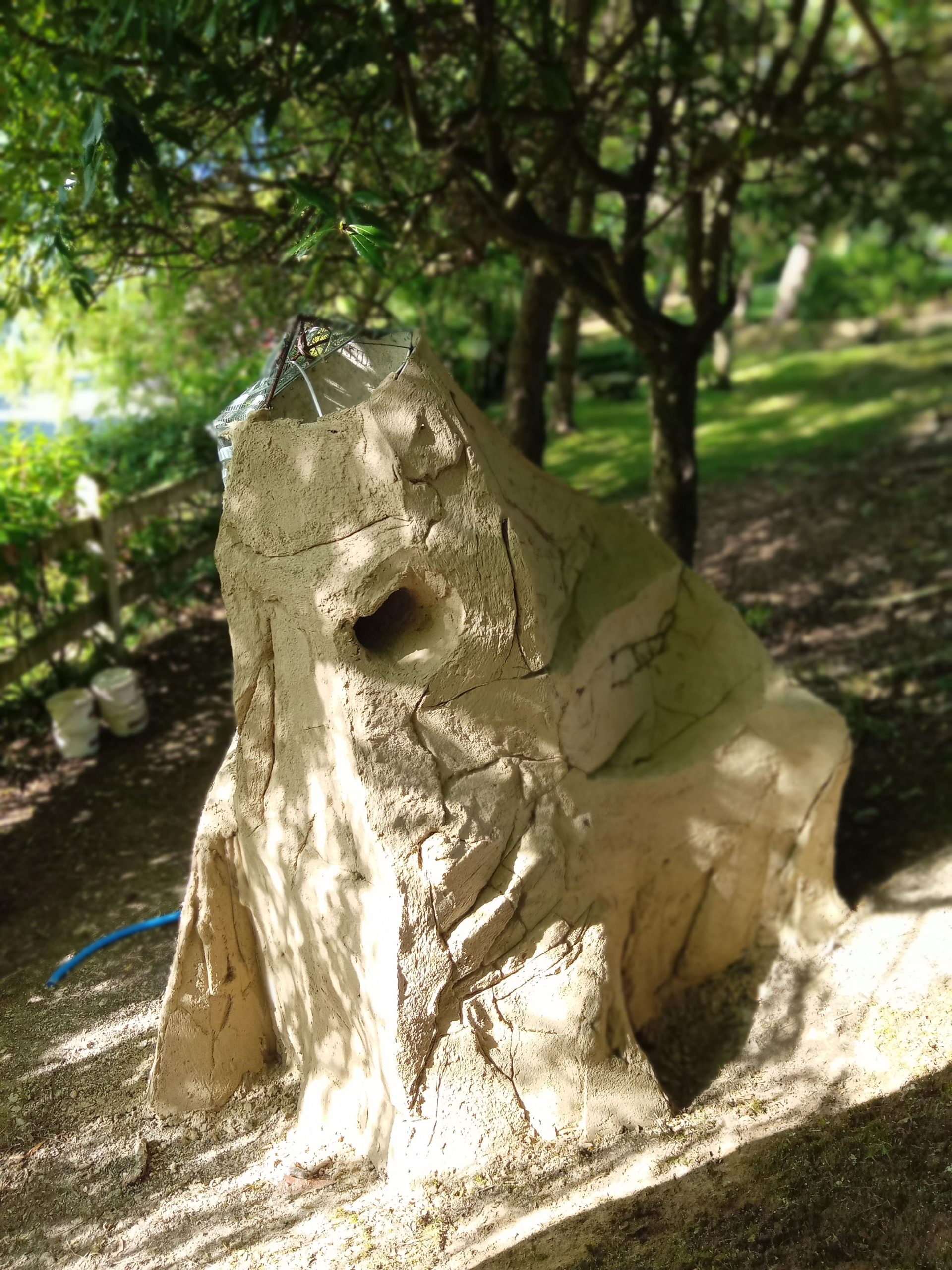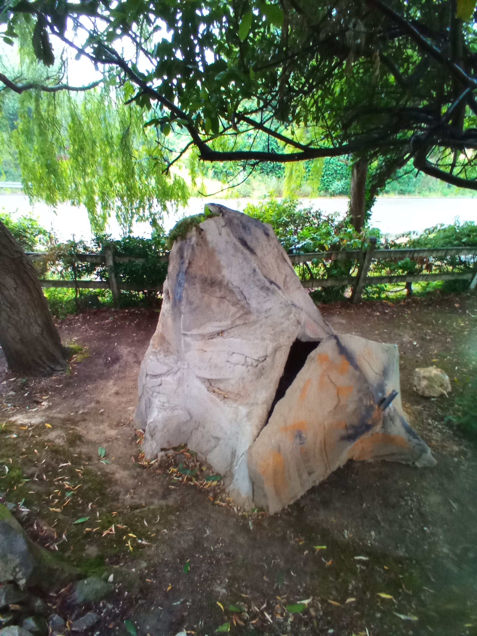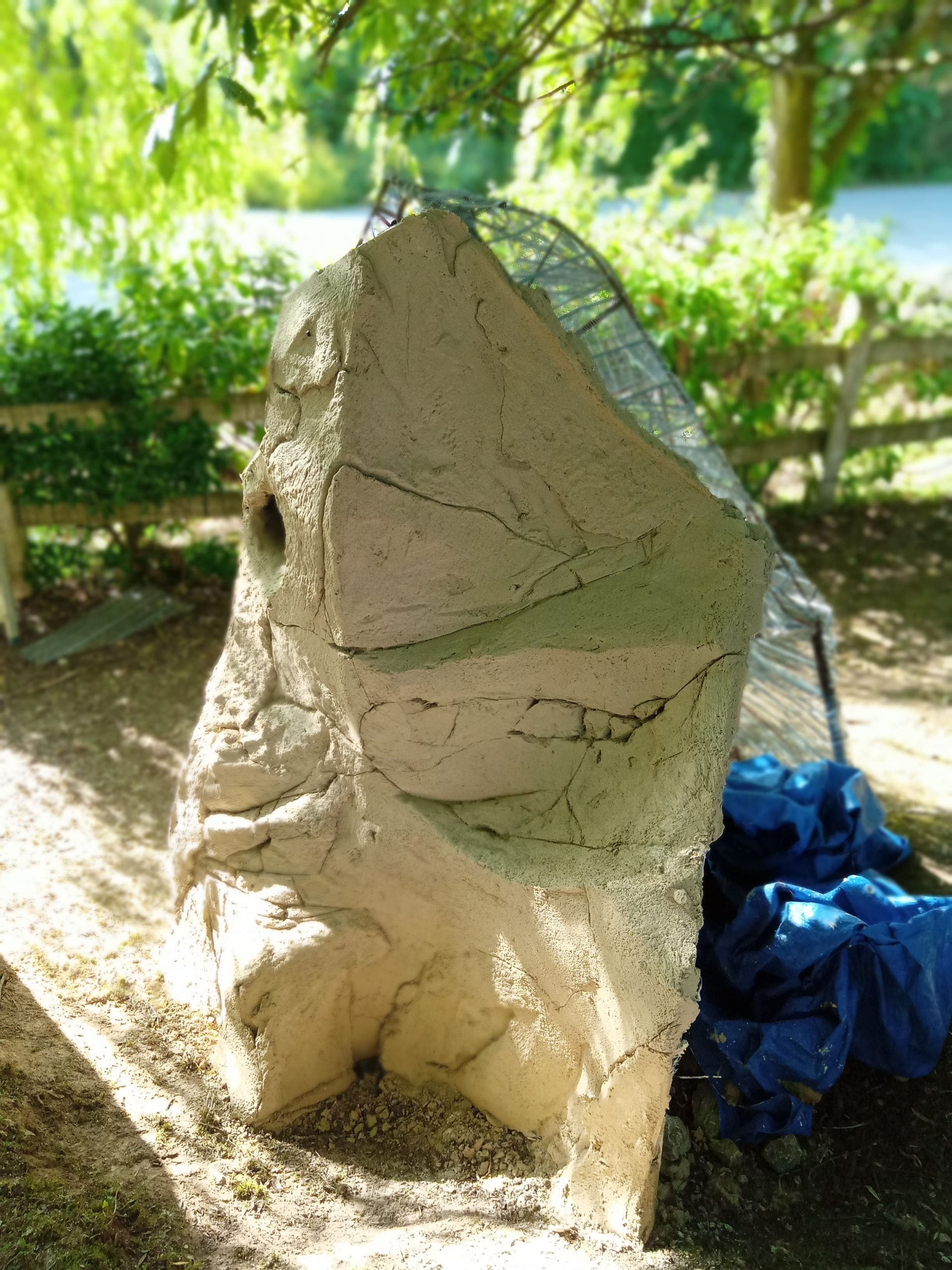 En forma de roca natural, creamos con una piedra de entorno iluminada de noche