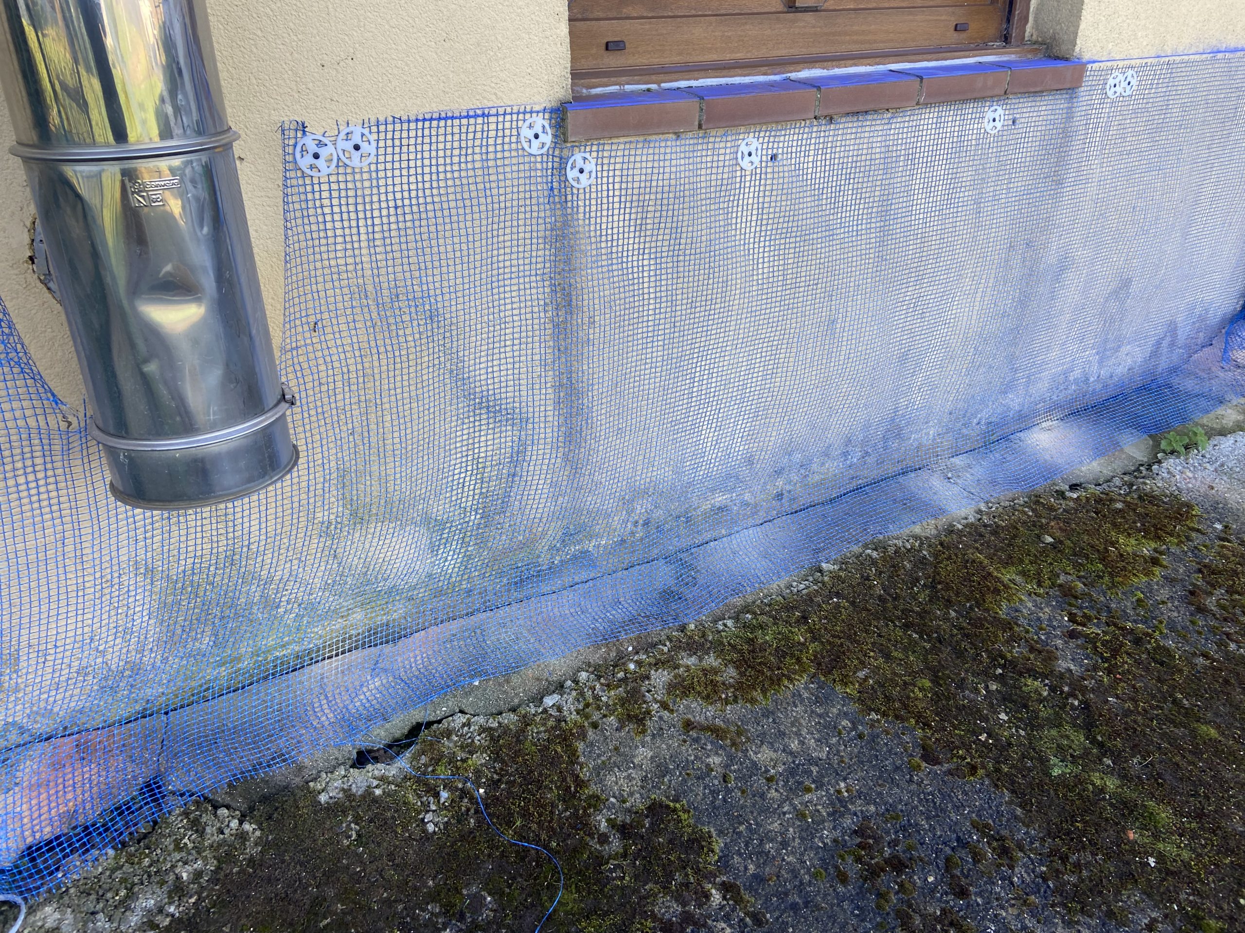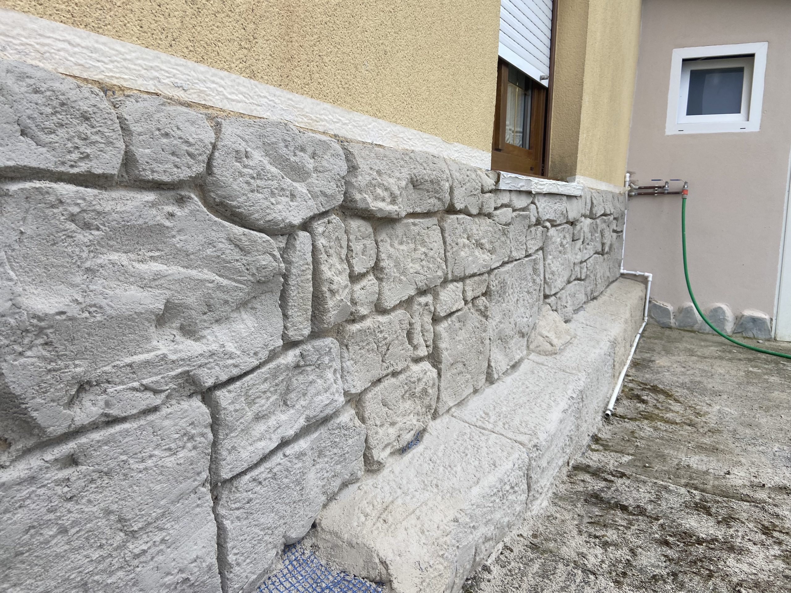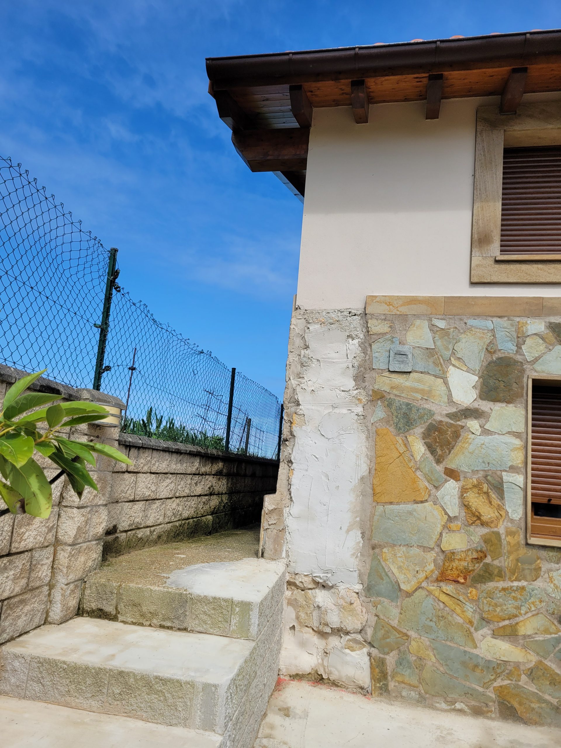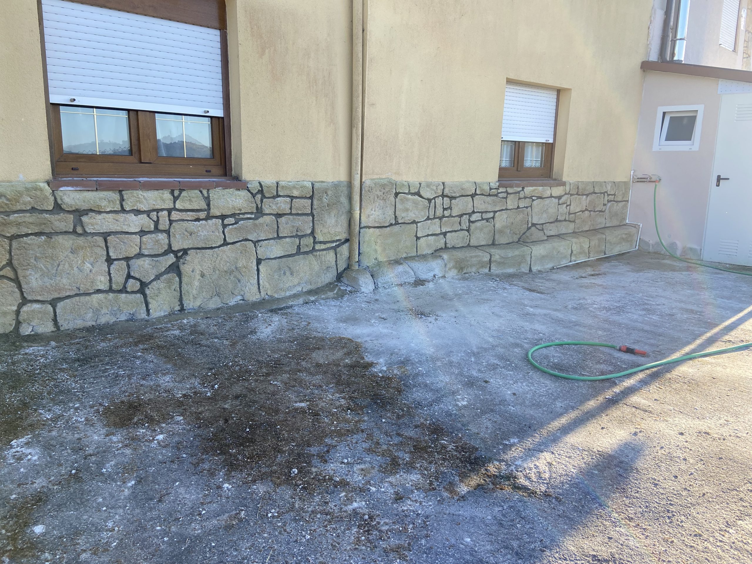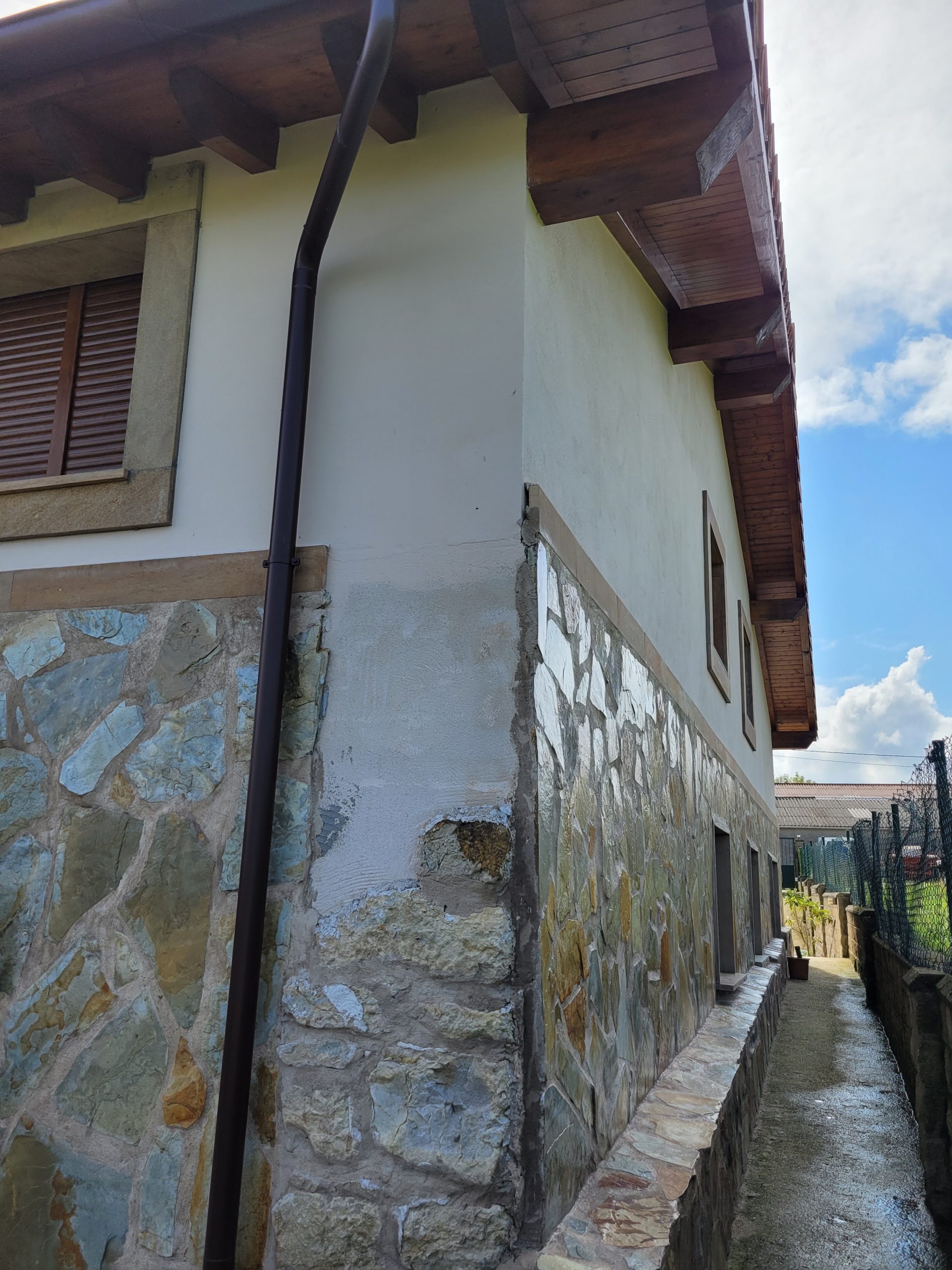 A diferencia de otras fachadas que realizamos , esta debíamos reconstruir la fachada sobre parte ya con piedras . Haciendo una reconstrucción lo más fiel a lo que ya había en la pared